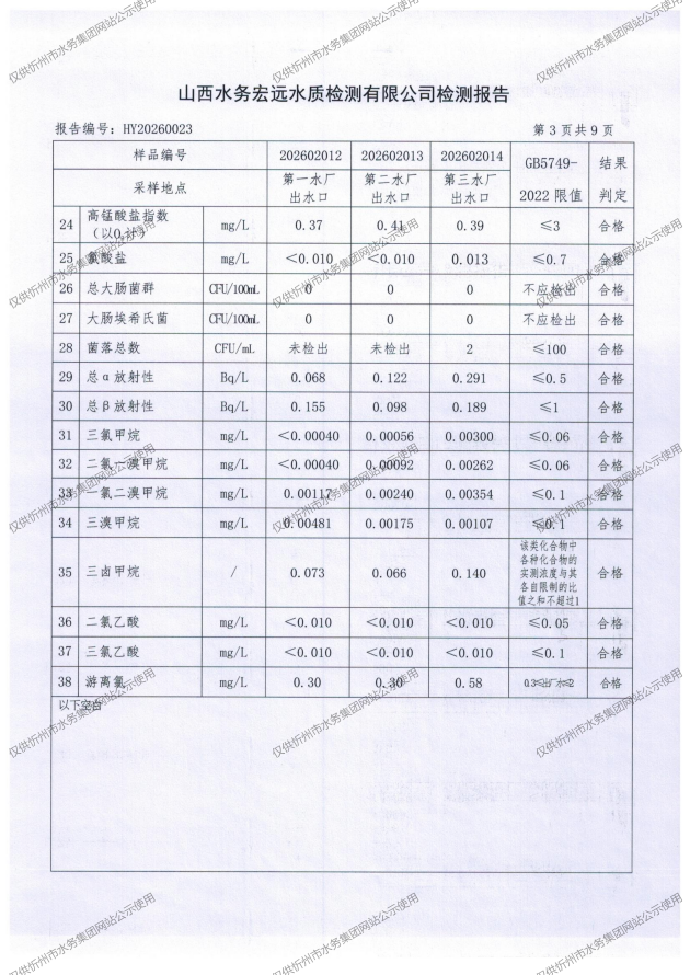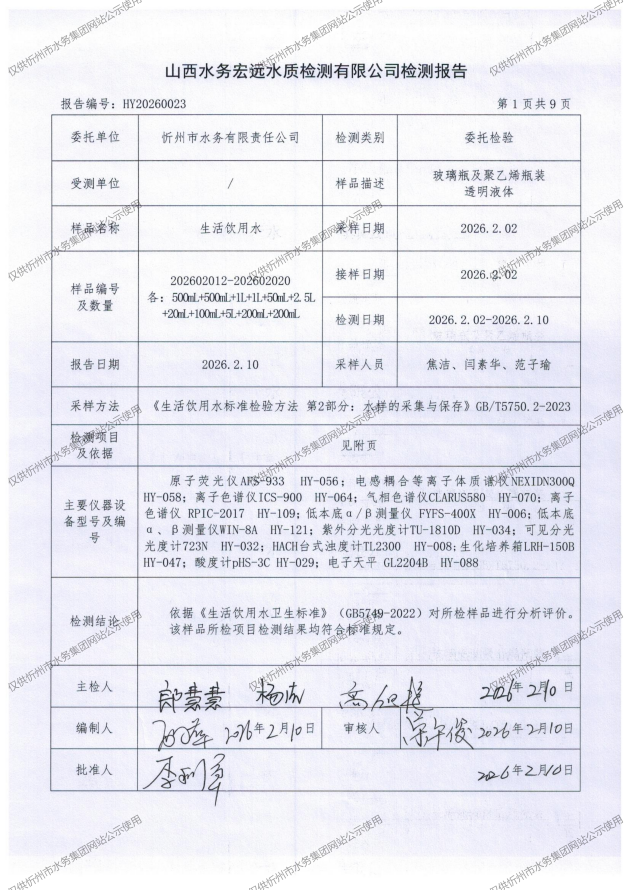 忻州城區(qū)公共供水水源水、出廠水、管網(wǎng)水、管網(wǎng)末梢水2026年2月份水質(zhì)信息公示